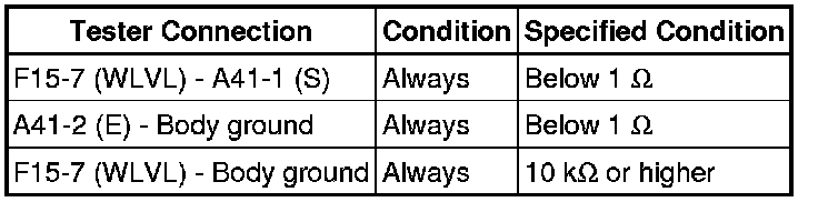 2. CHECK HARNESS AND CONNECTOR (LEVEL WARNING SWITCH - COMBINATION METER AND BODY GROUND)
