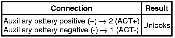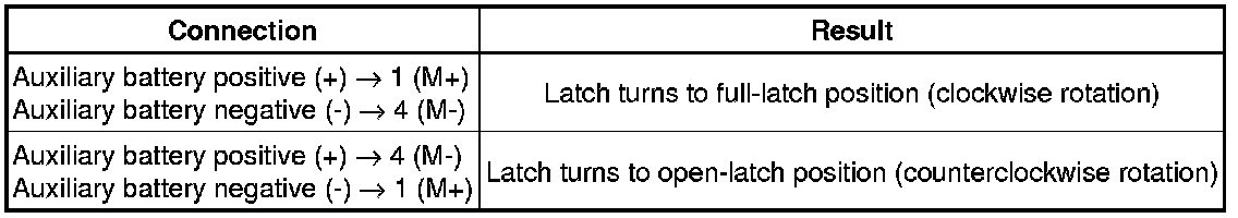 (2) Apply auxiliary battery voltage to the door lock motor and check the operation of the door lock motor.