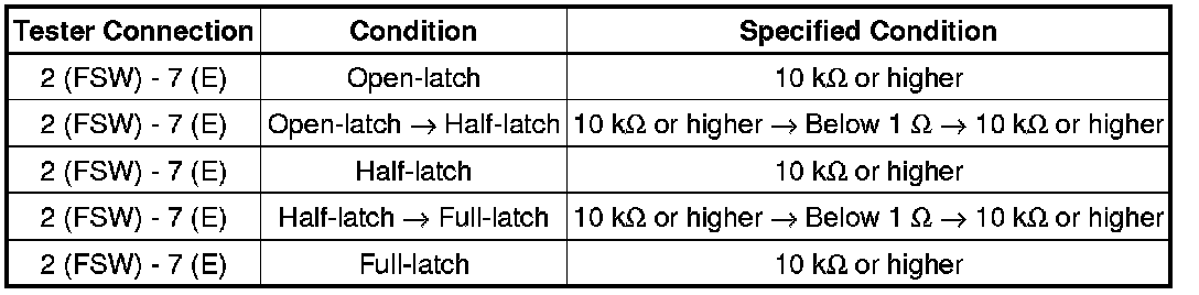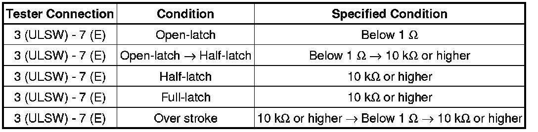 If the result is not as specified, replace the back door lock assembly.