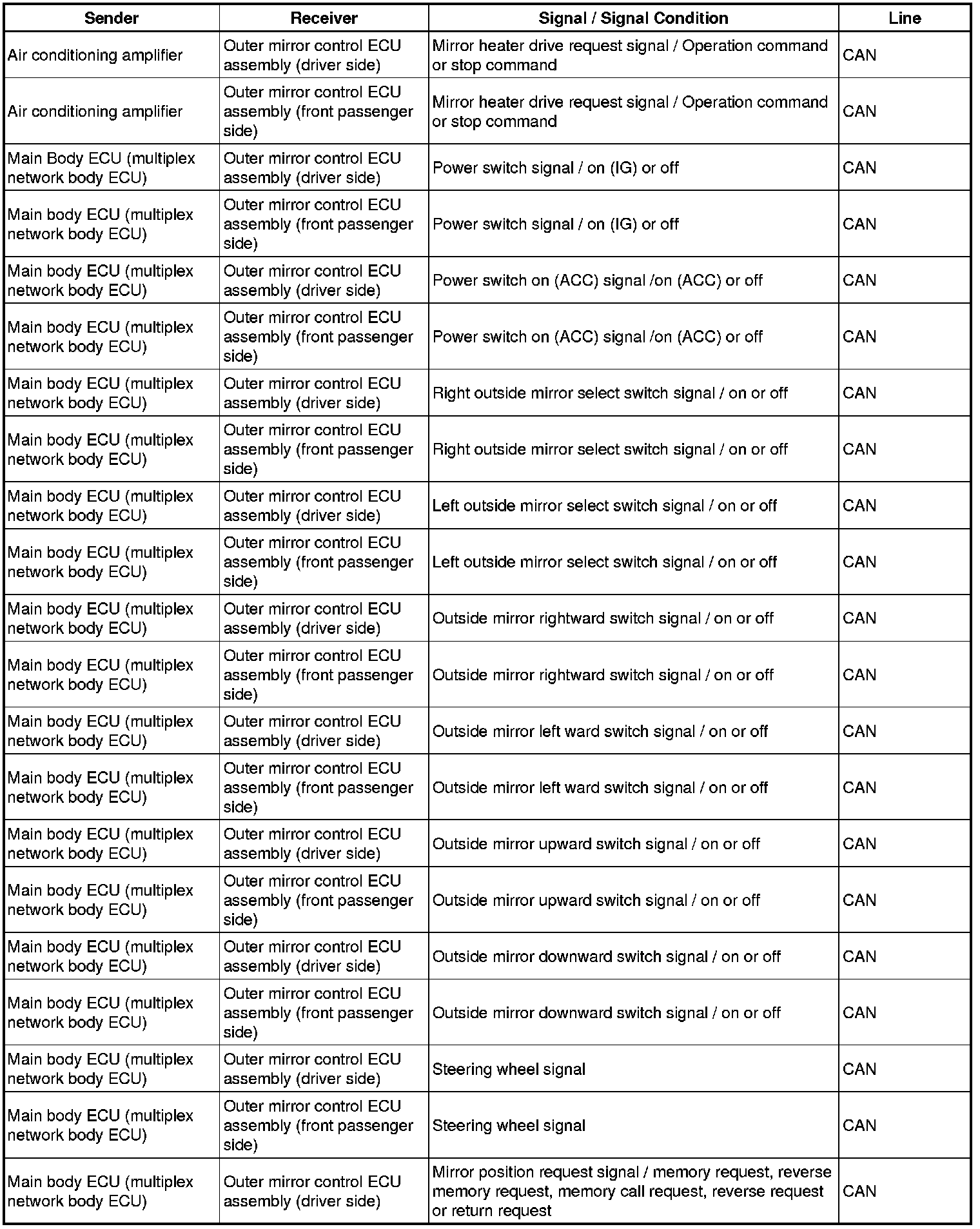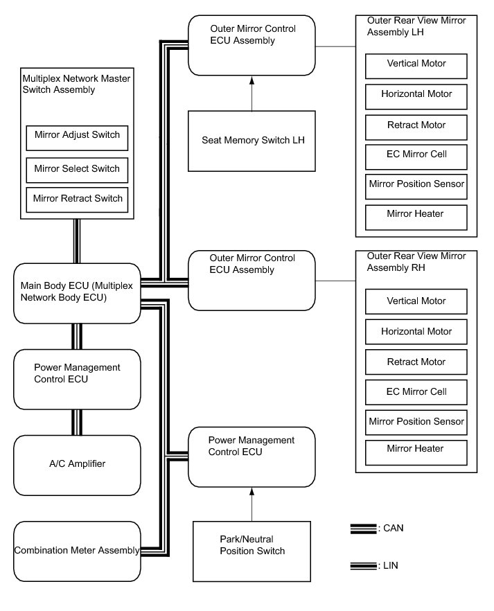 MIRROR (EXT): POWER MIRROR CONTROL SYSTEM: SYSTEM DIAGRAM