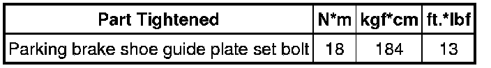 SPECIFICATIONS: PARKING BRAKE: TORQUE SPECIFICATIONS