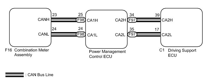 If the vehicle in front in the same lane significantly decreases vehicle speed or another vehicle moves in front of your vehicle, adequate deceleration cannot be applied and the vehicle-to-vehicle distance will shorten. At this time, the system sounds the buzzer and the master warning light blinks to warn the driver. Each indicator in the dynamic radar cruise control uses CAN for communication. Therefore, if there are any malfunctions in this circuit, check for DTCs in the CAN communication system before troubleshooting this circuit.