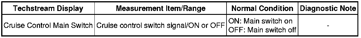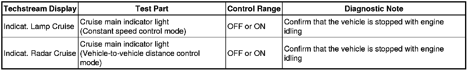 (e) Check the Data List for proper functioning of the cruise main indicator light.