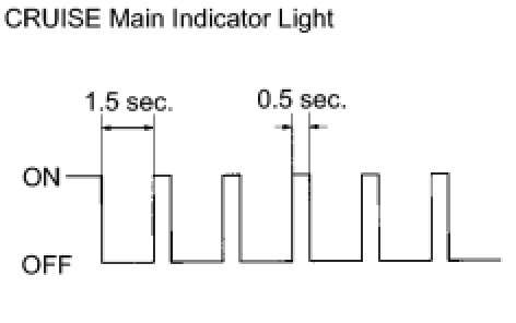 If a malfunction occurs in the speed sensor or stop light switch assembly, etc., during cruise control driving, the power management control ECU activates the AUTO CANCEL of the cruise control and turns on and off the CRUISE main indicator light to inform the driver of a malfunction. At the same time, the malfunction is stored in memory as a diagnostic trouble code.