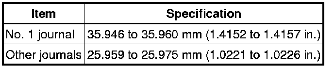 If the journal diameter is not as specified, check the oil clearance.