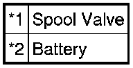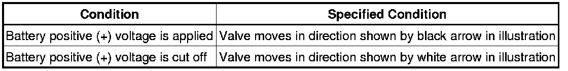 (1) Connect a battery positive (+) lead to terminal 1 and negative (-) lead to terminal 2, and check the movement of the valve.