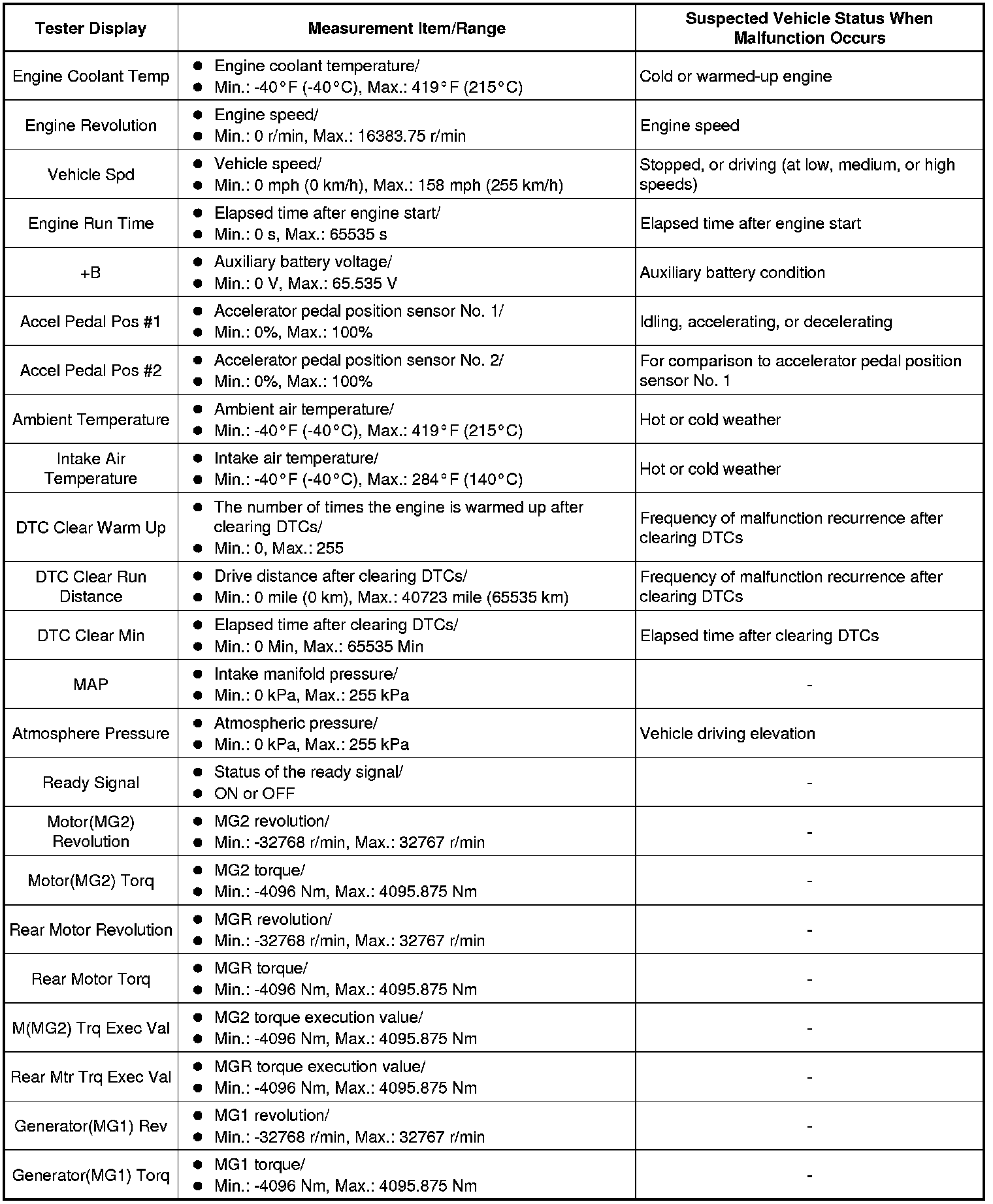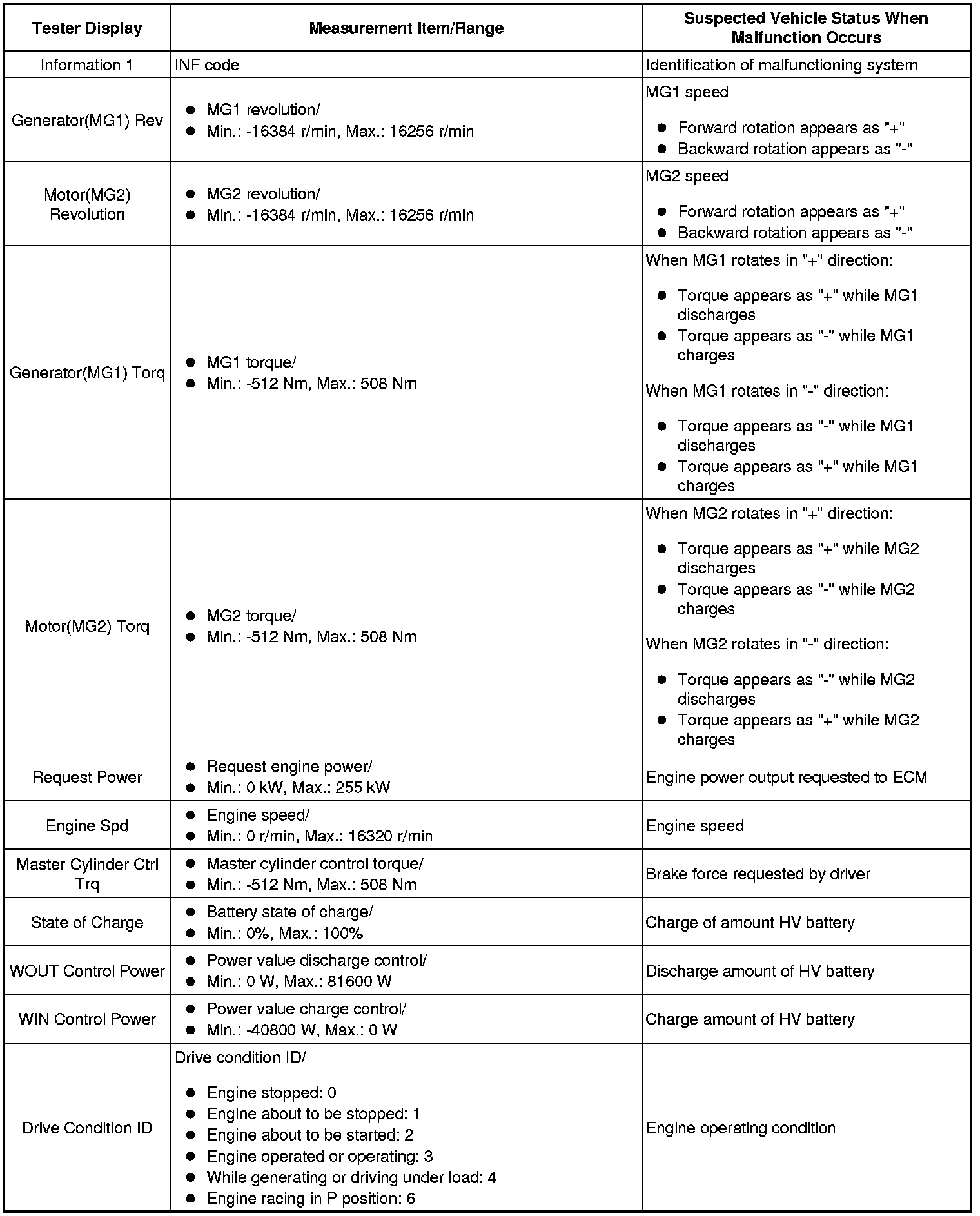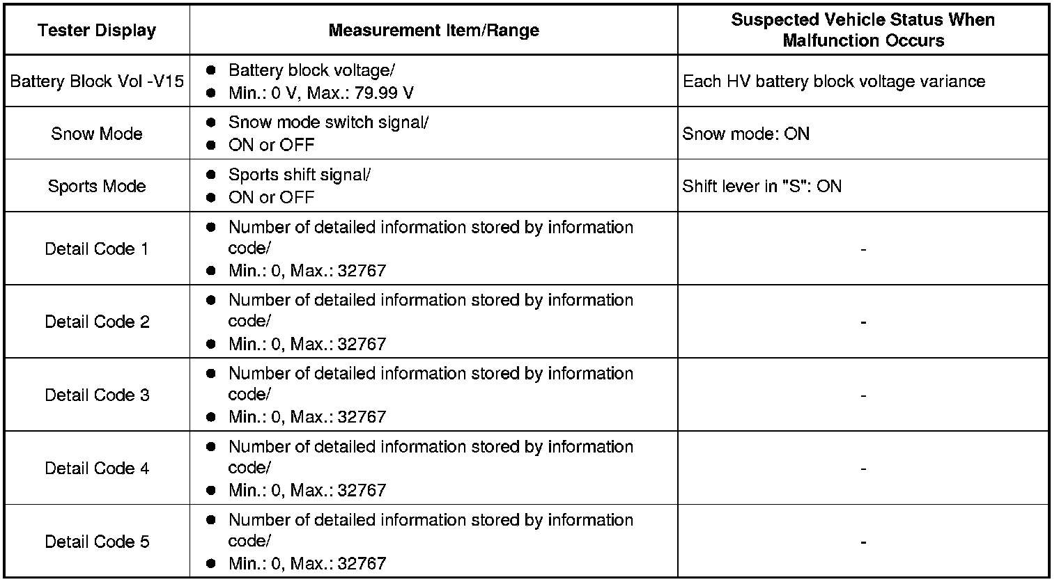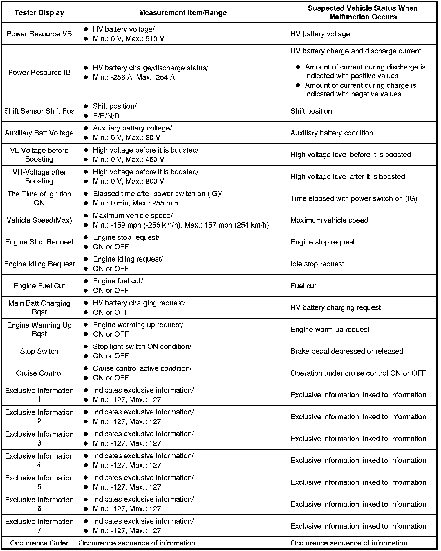 HYBRID / BATTERY CONTROL: HYBRID CONTROL SYSTEM: INFORMATION / FREEZE FRAME DATA