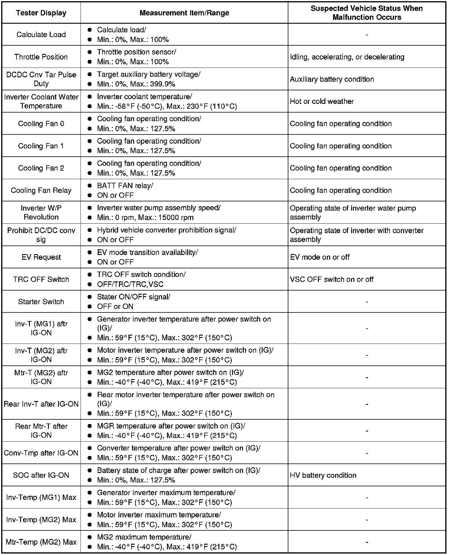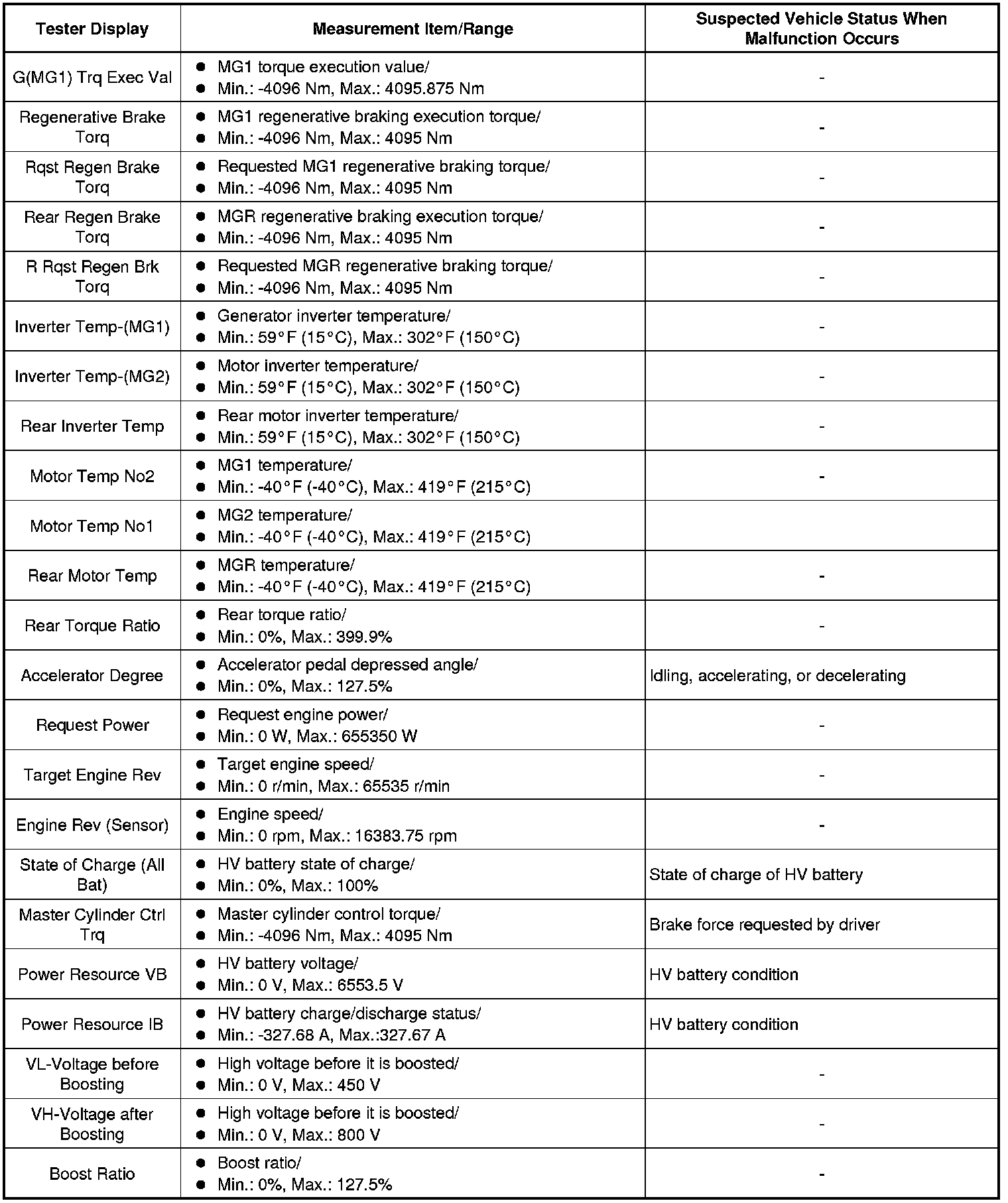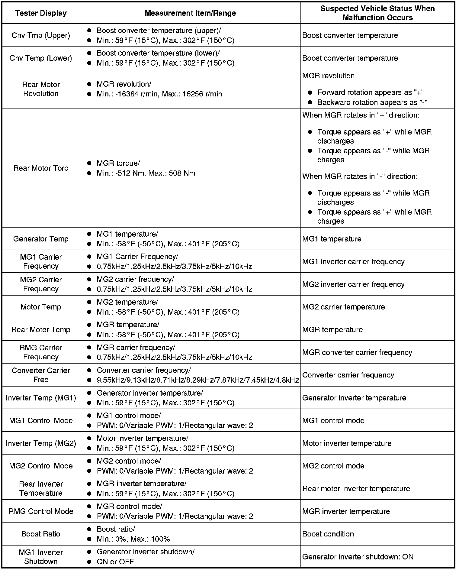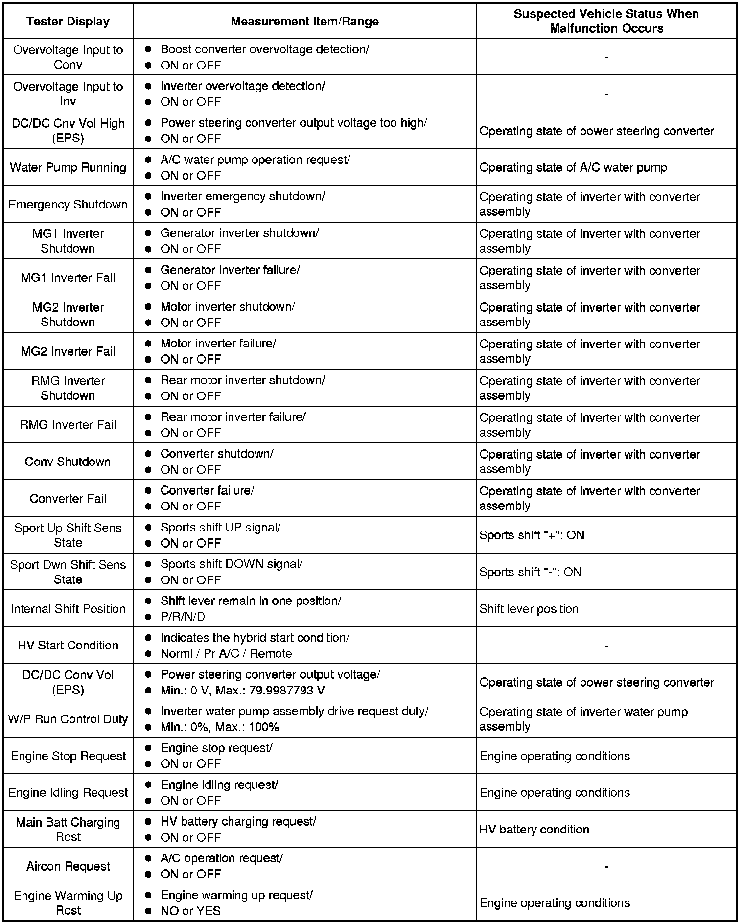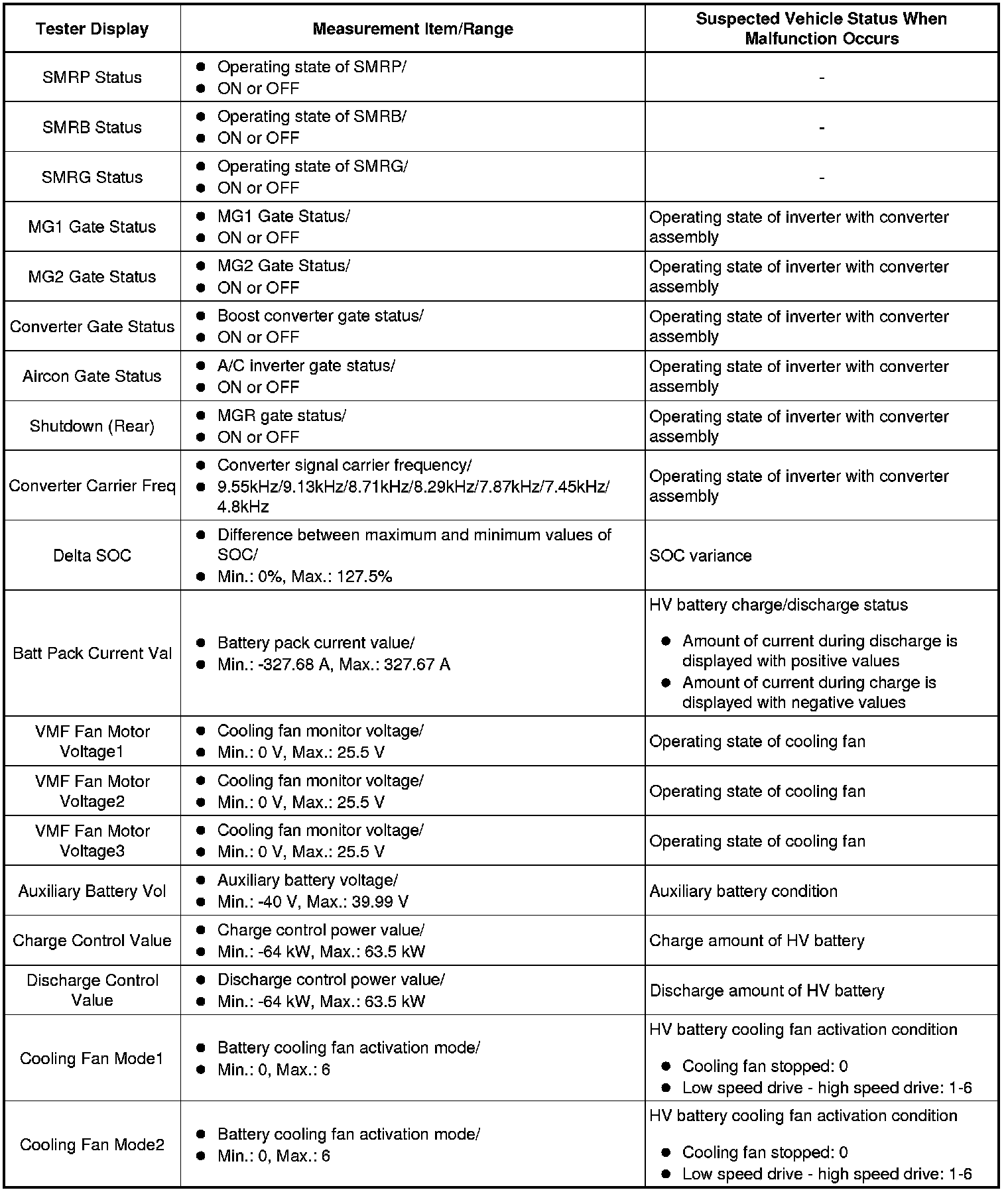 HYBRID / BATTERY CONTROL: HYBRID CONTROL SYSTEM: INFORMATION / FREEZE FRAME DATA