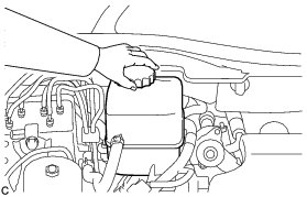 * As brake fluid may overflow when replacing brake fluid, do not place the fluid can on the reservoir filler opening.