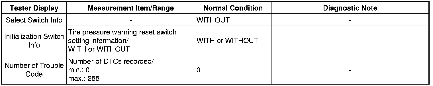 TIRE PRESSURE MONITORING: TIRE PRESSURE WARNING SYSTEM: DATA LIST / ACTIVE TEST