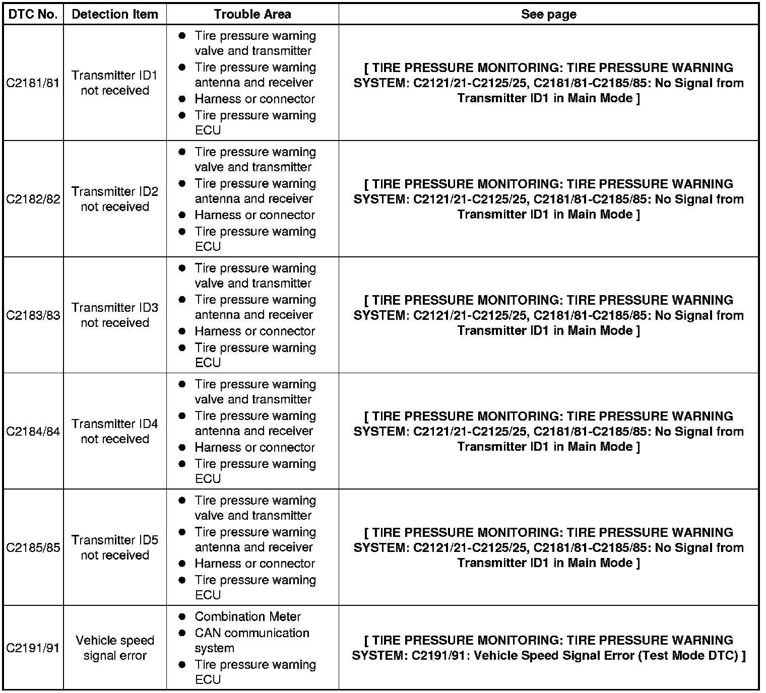 * When entering signal check mode, the tire pressure warning ECU sets all the test mode DTCs first.