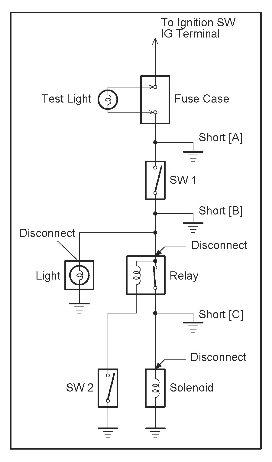 [C] - Ignition SW, SW 1 and Relay on (Connect the Relay) and SW 2 off (or Disconnect SW 2)