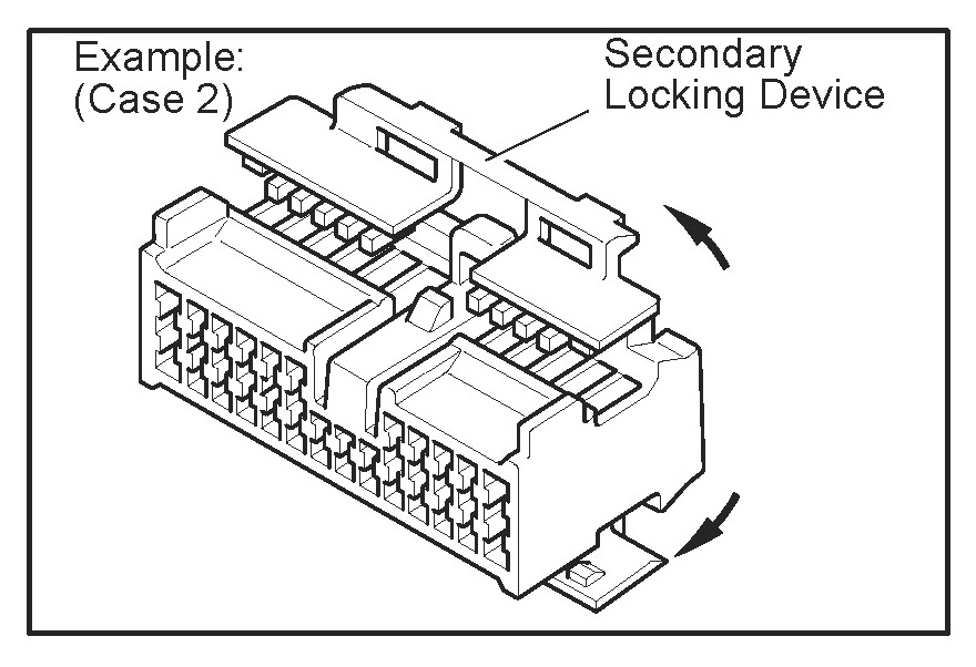 b. Use a special tool or the terminal pick to unlock the secondary locking device or terminal retainer.