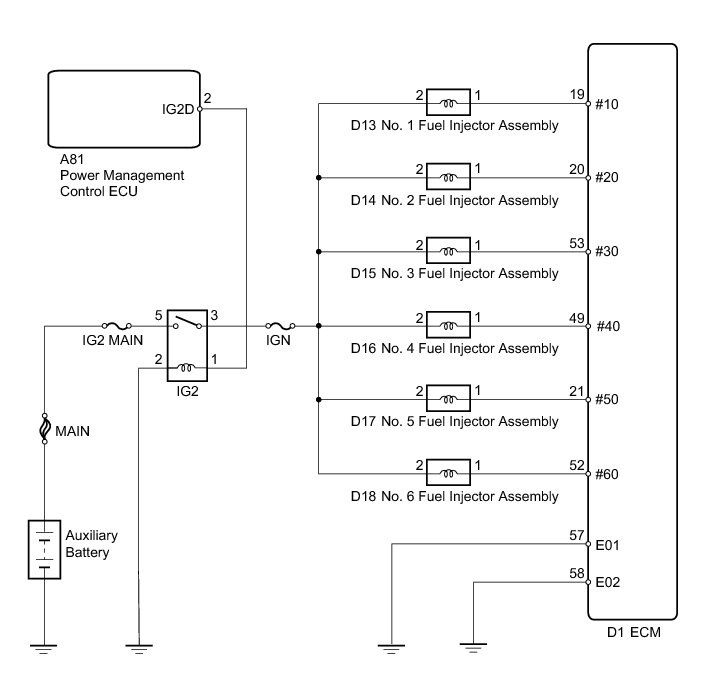 2GR-FXE ENGINE CONTROL: SFI SYSTEM: Fuel Injector Circuit