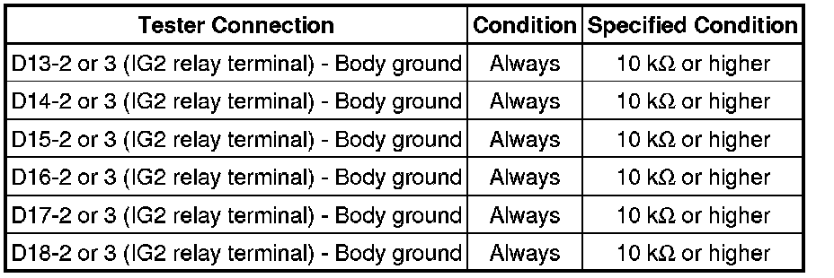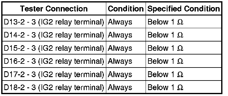 NG -- CHECK HARNESS AND CONNECTOR (IG2 RELAY - FUEL INJECTOR ASSEMBLY)