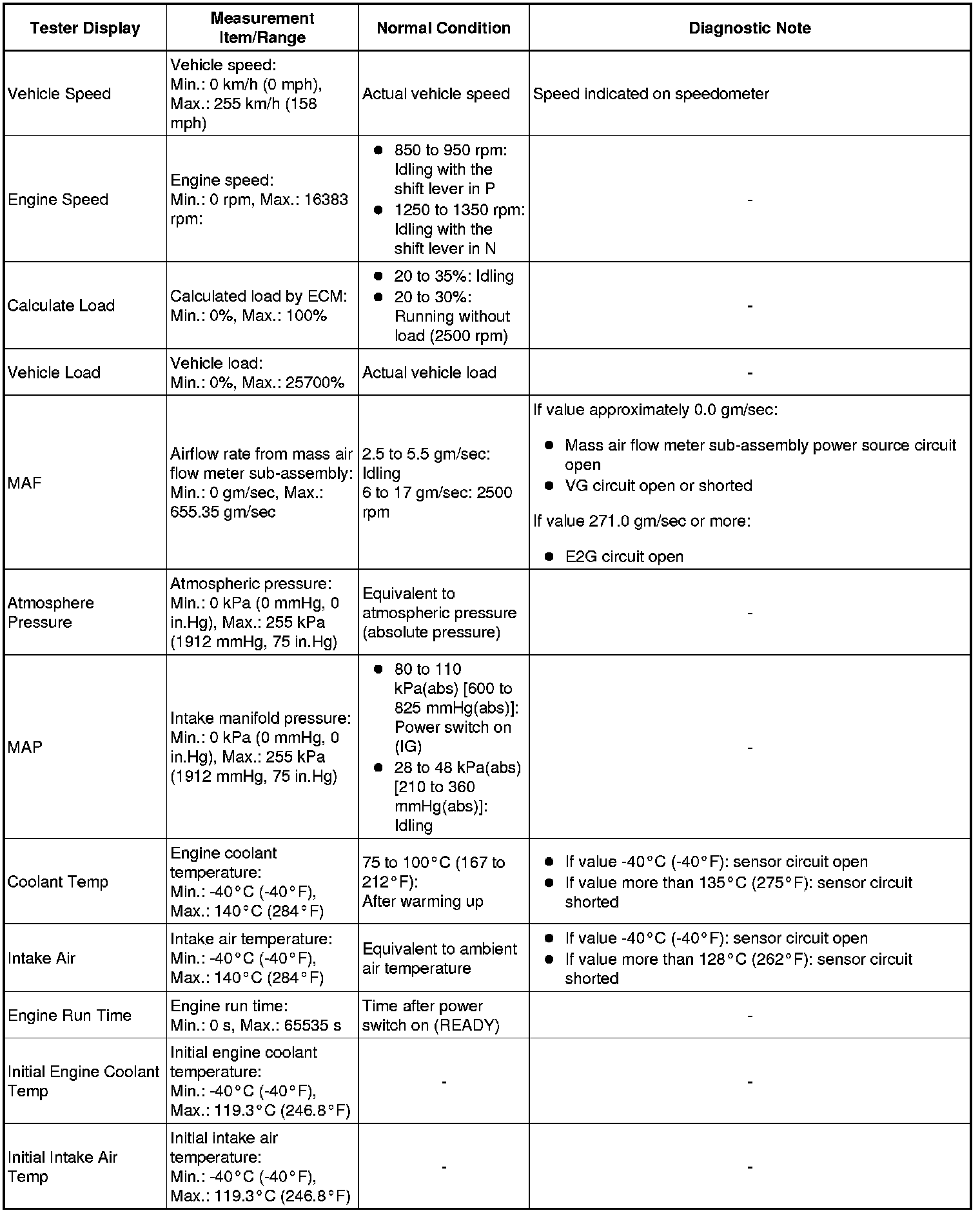 Using the Techstream to read the Data List allows the values or states of switches, sensors, actuators and other items to be read without removing any parts. This non-intrusive inspection can be very useful because intermittent conditions or signals may be discovered before parts or wiring is disturbed. Reading the Data List information early in troubleshooting is one way to save diagnostic time.
