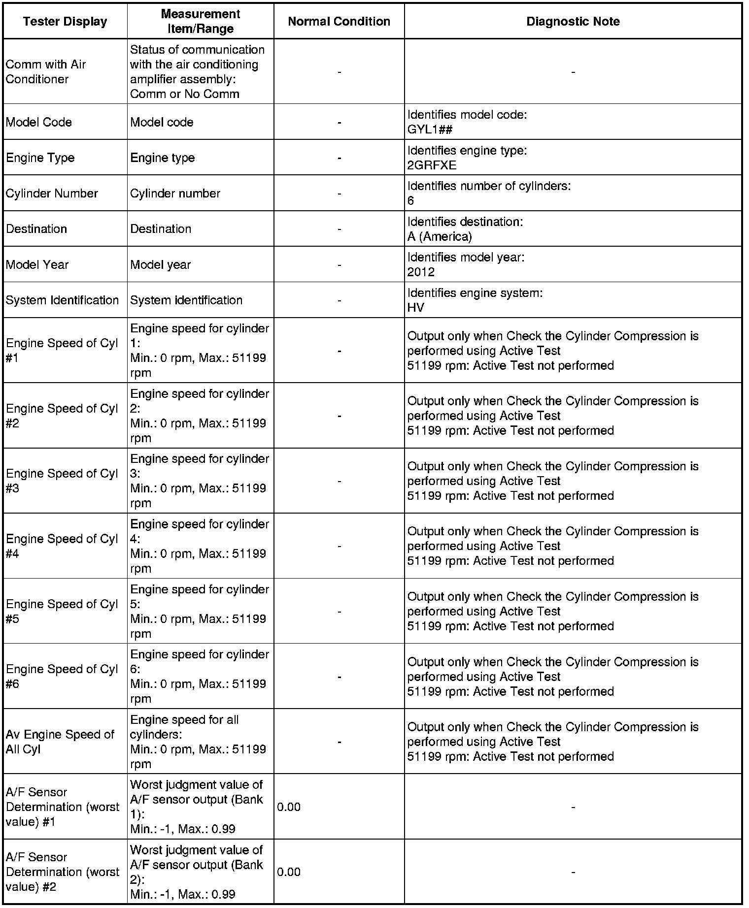 *1: While the Check the Cylinder Compression Active Test is being performed, if the speed of one cylinder is more than the other cylinders, it can be determined that the compression pressure of that cylinder is lower than the other cylinders.