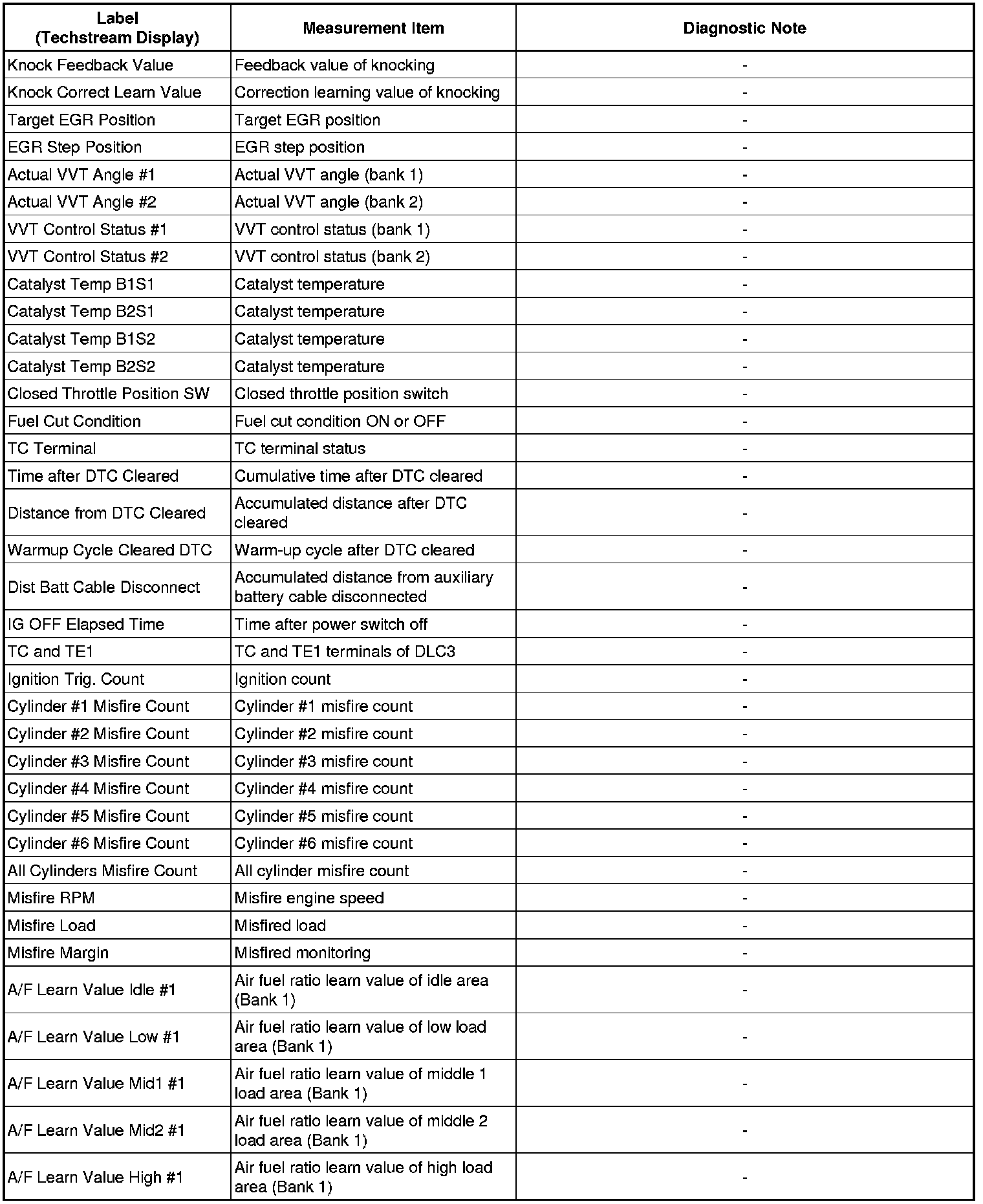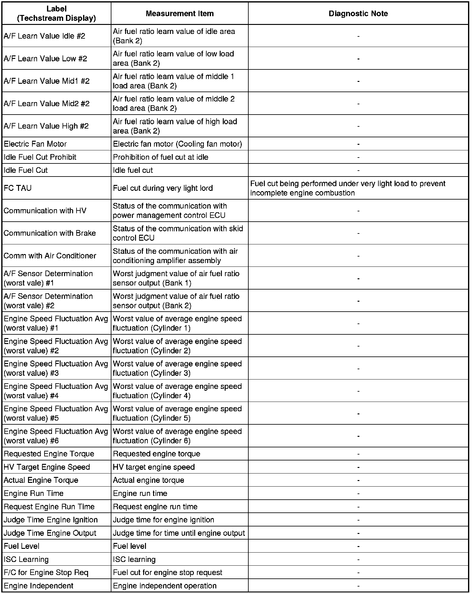 2GR-FXE ENGINE CONTROL: SFI SYSTEM: FREEZE FRAME DATA