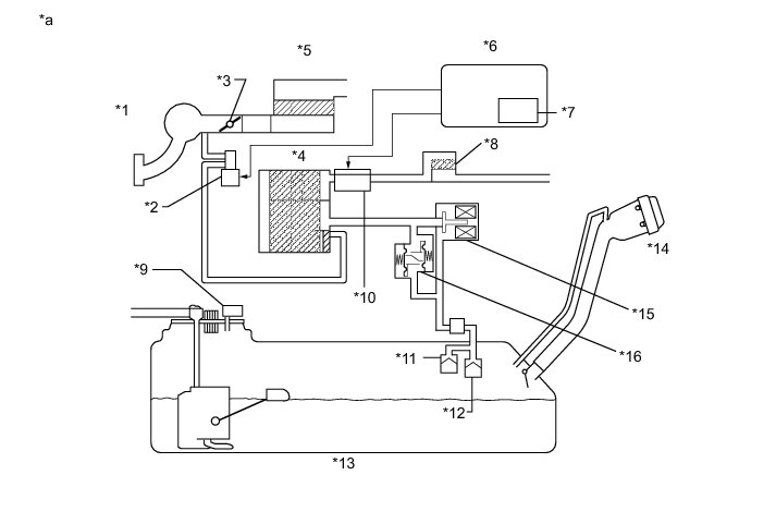 * Do not perform the Evaporative System Check when the fuel tank is more than 90% full because the cut-off valve may be closed and the leak check of the fuel tank is impossible.