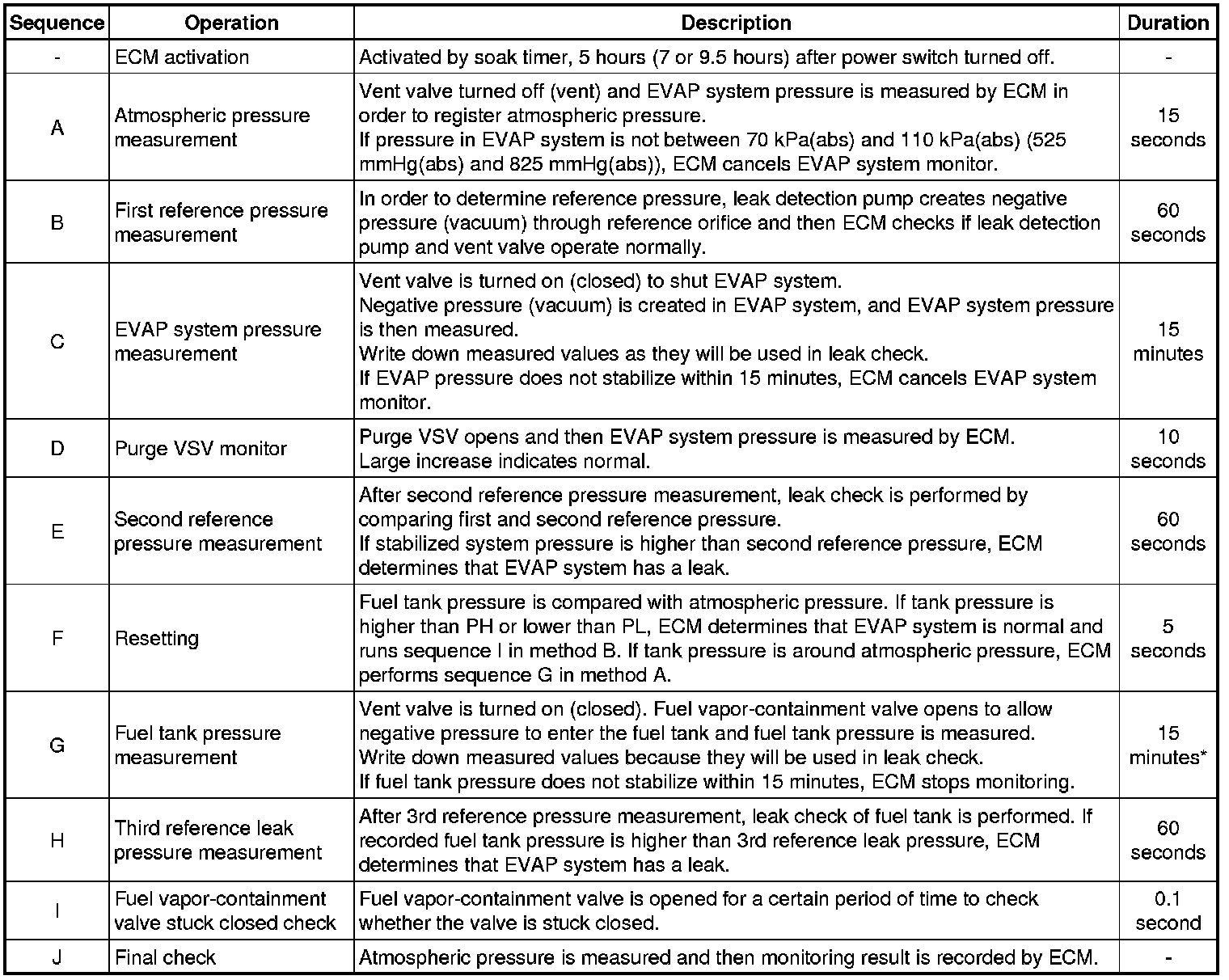 *: If there is only a small amount of fuel in the fuel tank, stabilizing the EVAP pressure takes longer than usual.