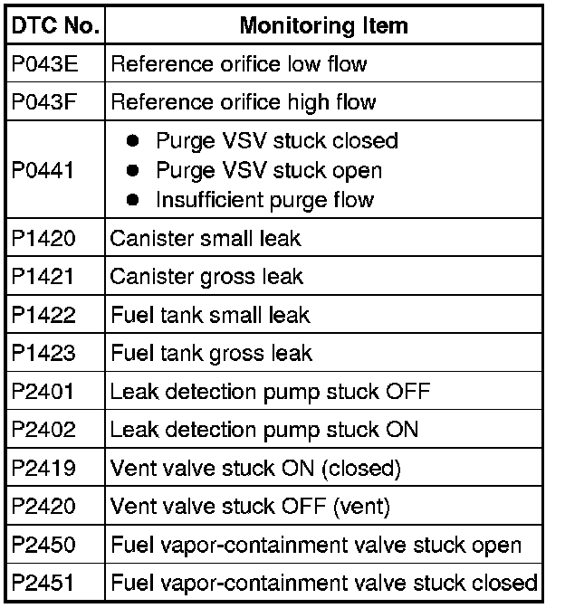 EVAP Related DTCs