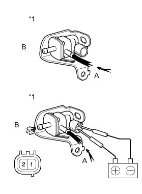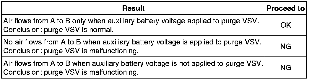 (b) Apply compressed air to the purge VSV, and confirm that no air flows from A to B as shown in the illustration.