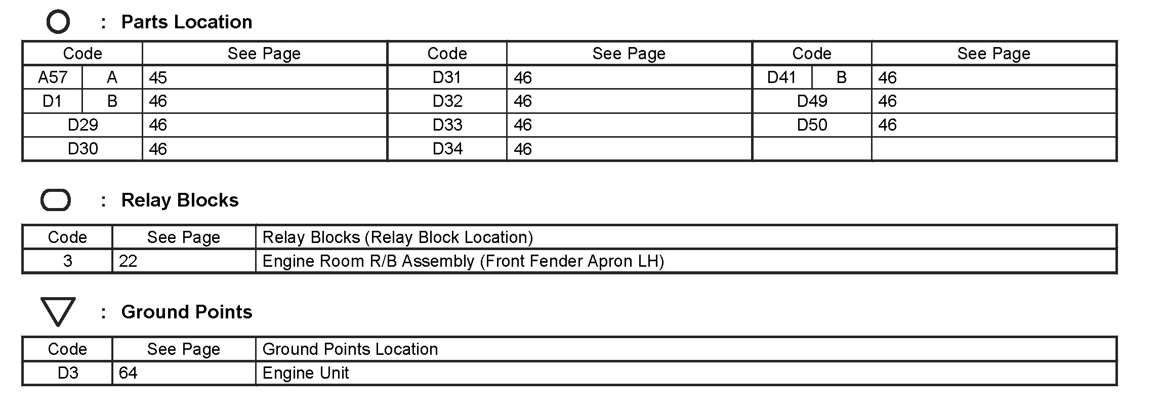 Locations: The locations of components, connectors, ground points, and splices referred to within these diagrams can be found at Vehicle Locations. Locations
