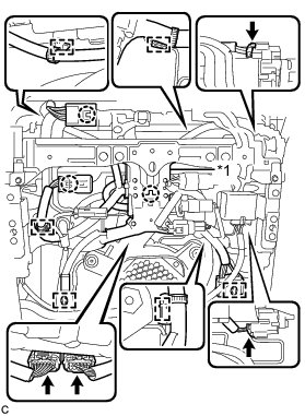 (b) Engage the 3 claws to install the 2 connectors and wire harness holder.