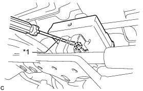 (e) Using a screwdriver with the tip wrapped with protective tape, disengage the claw to remove the occupant classification ECU.