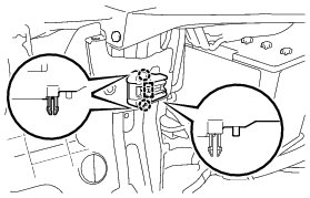 * When installing the front airbag sensor, be careful that the SRS wiring does not interfere with or is not pinched between other parts.