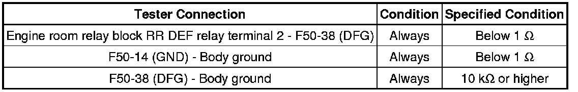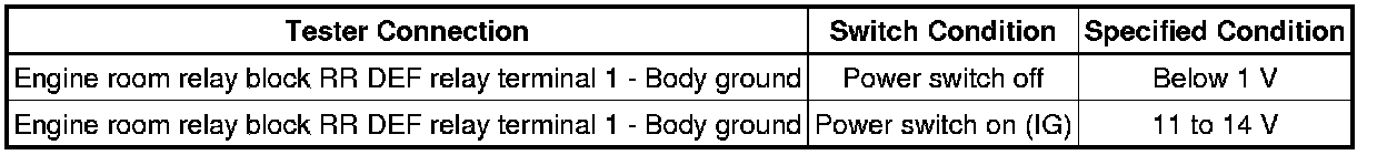 4. CHECK HARNESS AND CONNECTOR (RR DEF RELAY POWER SOURCE)