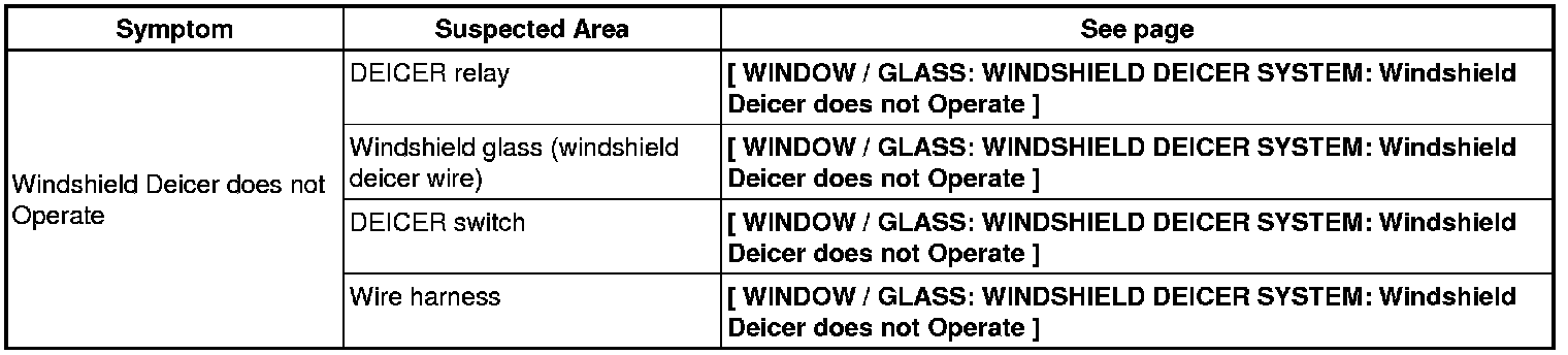 WINDOW / GLASS: WINDSHIELD DEICER SYSTEM: PROBLEM SYMPTOMS TABLE