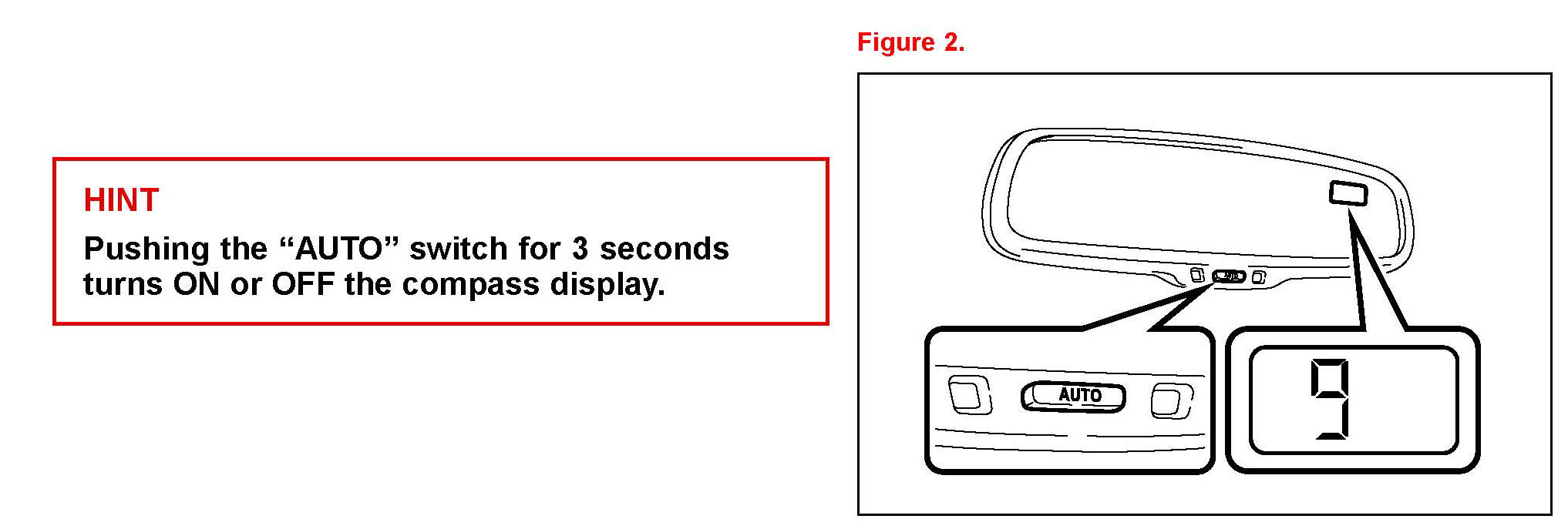 Some 2013 model RX350 vehicles are equipped with a compass in the rear view mirror. In order for the compass to correctly indicate the direction that the vehicle is heading, it must be calibrated prior to vehicle delivery. Use the following procedure to perform initial calibration during Pre-Delivery Service (PDS).