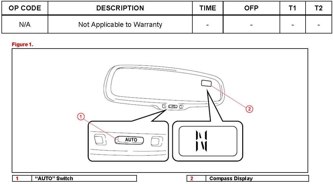 Some 2013 model RX45Oh vehicles are equipped with a compass in the rear view mirror. In order for the compass to correctly indicate the direction that the vehicle is heading, it must be calibrated prior to vehicle delivery. Use the following procedure to perform initial calibration during Pre-Delivery Service (PDS).