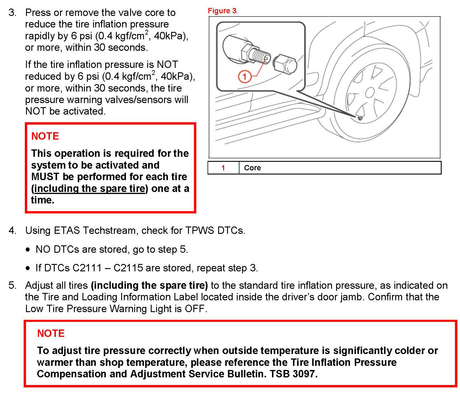 During Pre-Delivery Service (PDS) the tire pressure warning valves/sensors must be activated according to the procedure in this TSB
