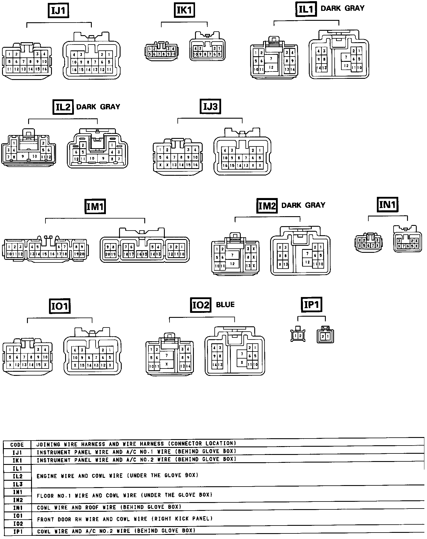 Instrument Panel Connectors 1:
