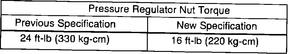 Tightening torque for Pressure Regulator nut has also been changed as shown: