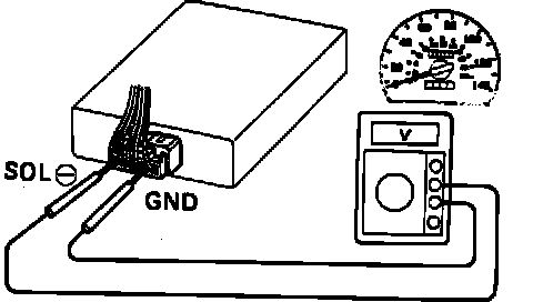 7. Place transmission in gear and while running at 37 mph, measure voltage between ECU terminals SOL - and GND.