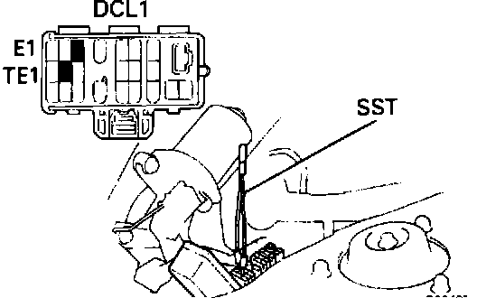 - Start engine and install jumper wire between DLC connector terminals TE1 and E1.