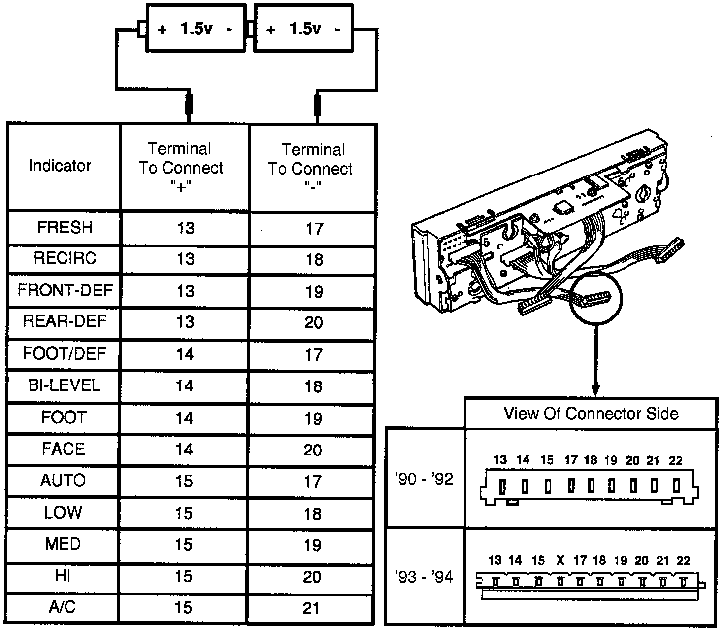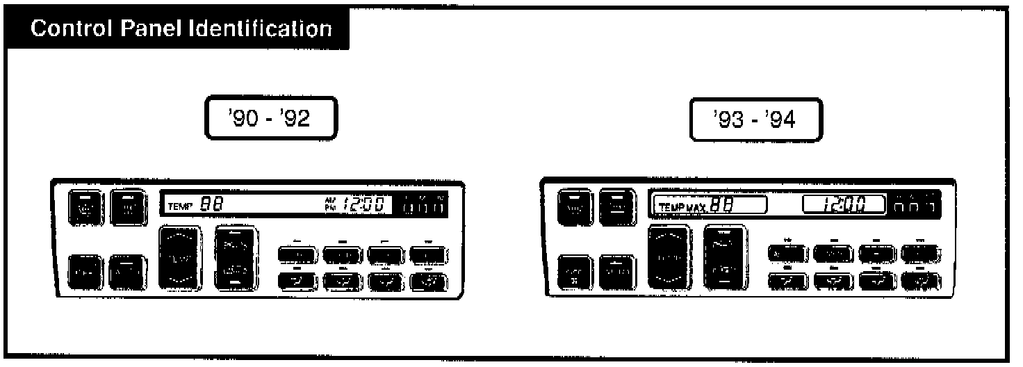 A minor change to the control panel was made for the '93 model year, therefore the '90-'92 model year control panels differ from the '93-'94 model year panels. Use the illustrations to properly identify the components.