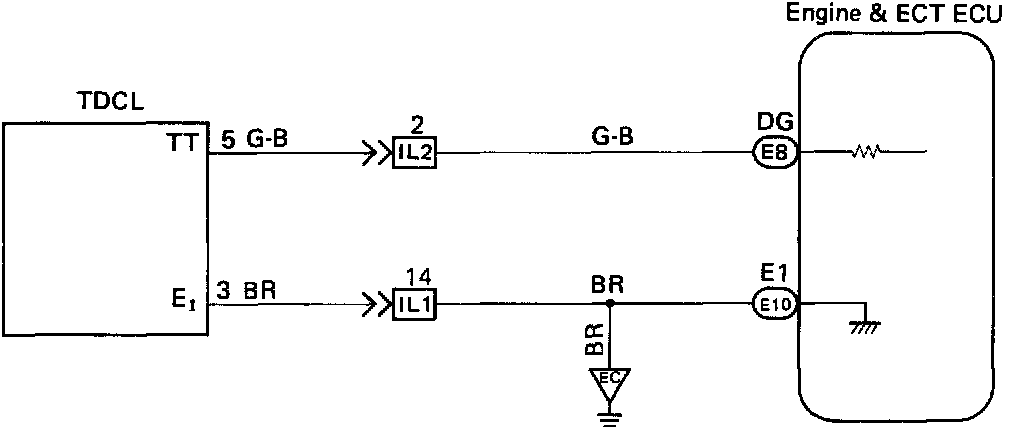 Checks of ECU input and output signals related to the throttle position sensor, brakes, shift position and other circuits can be performed by measuring the voltages at terminal TT of the check connector.