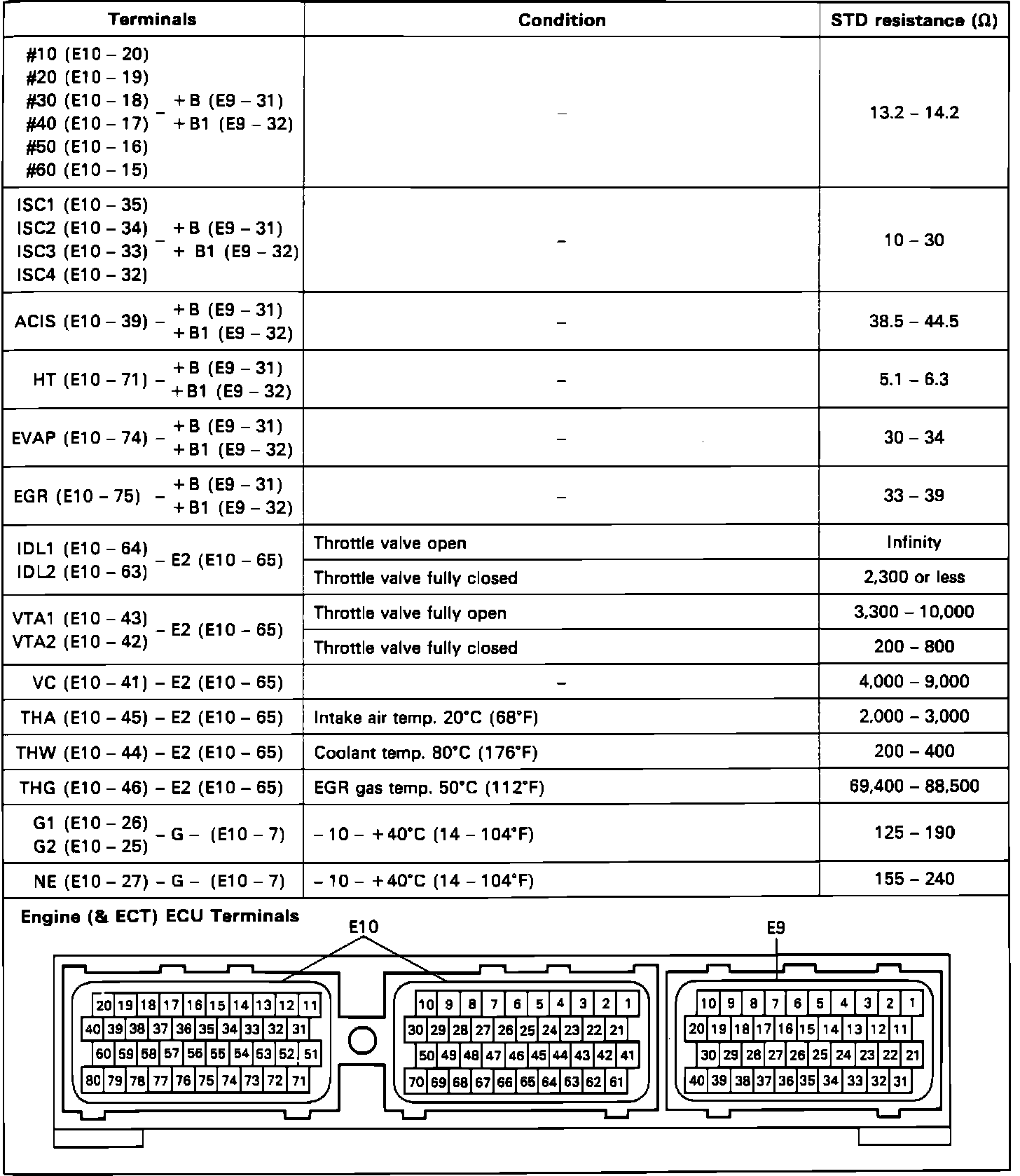 The fuel injection circuit can be checked by measuring the resistance and voltage at the wiring connectors of the ECM.
