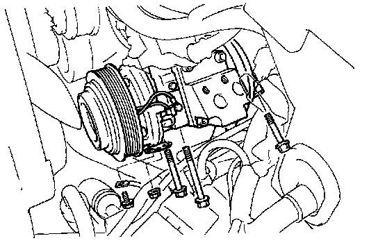 (d) Remove the nut, three bolts, bracket and the compressor.