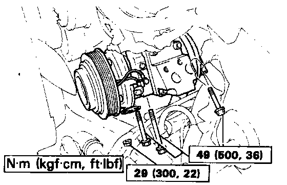 Bolts 49 N.m (500 kgf.cm, 36 ft.lbf)