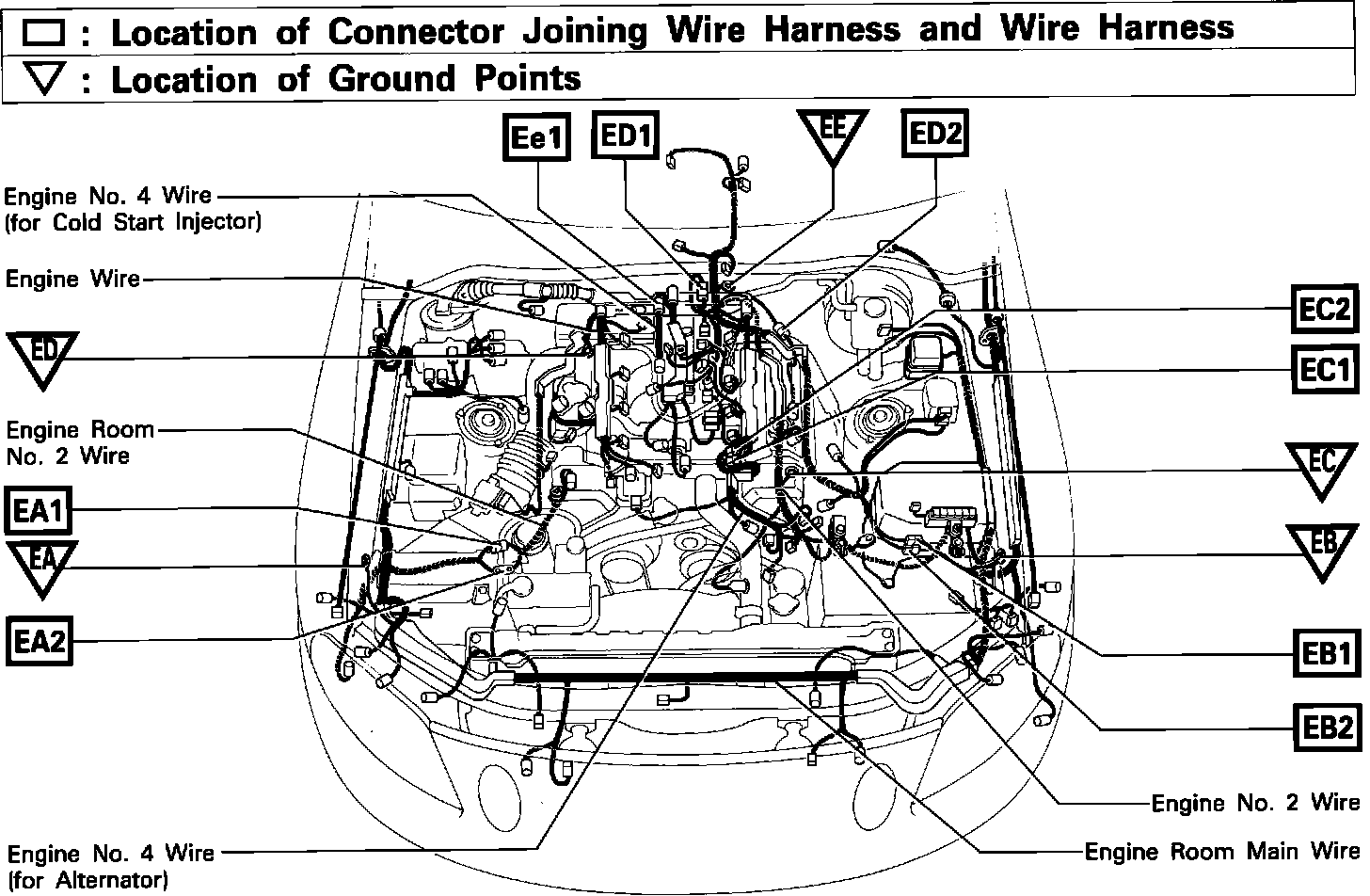 Location Of Connector Joining Sub-harness And Wire Harness: