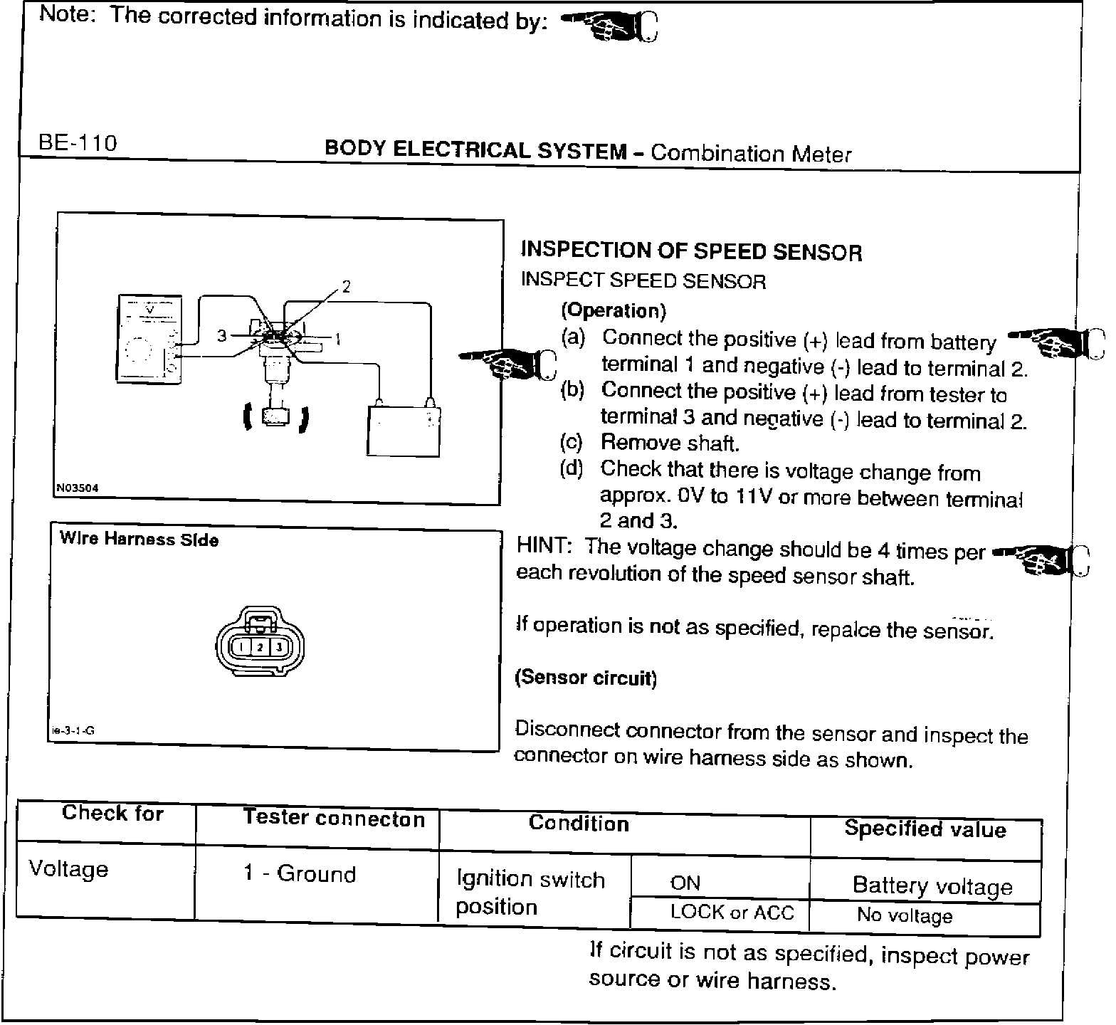 Listed are corrections for the 1992 SC 400 Repair Manual's BODY ELECTRICAL SYSTEM - Combination Meter section. Actual repair manual changes are attached as paste-in pages for Lexus dealers.