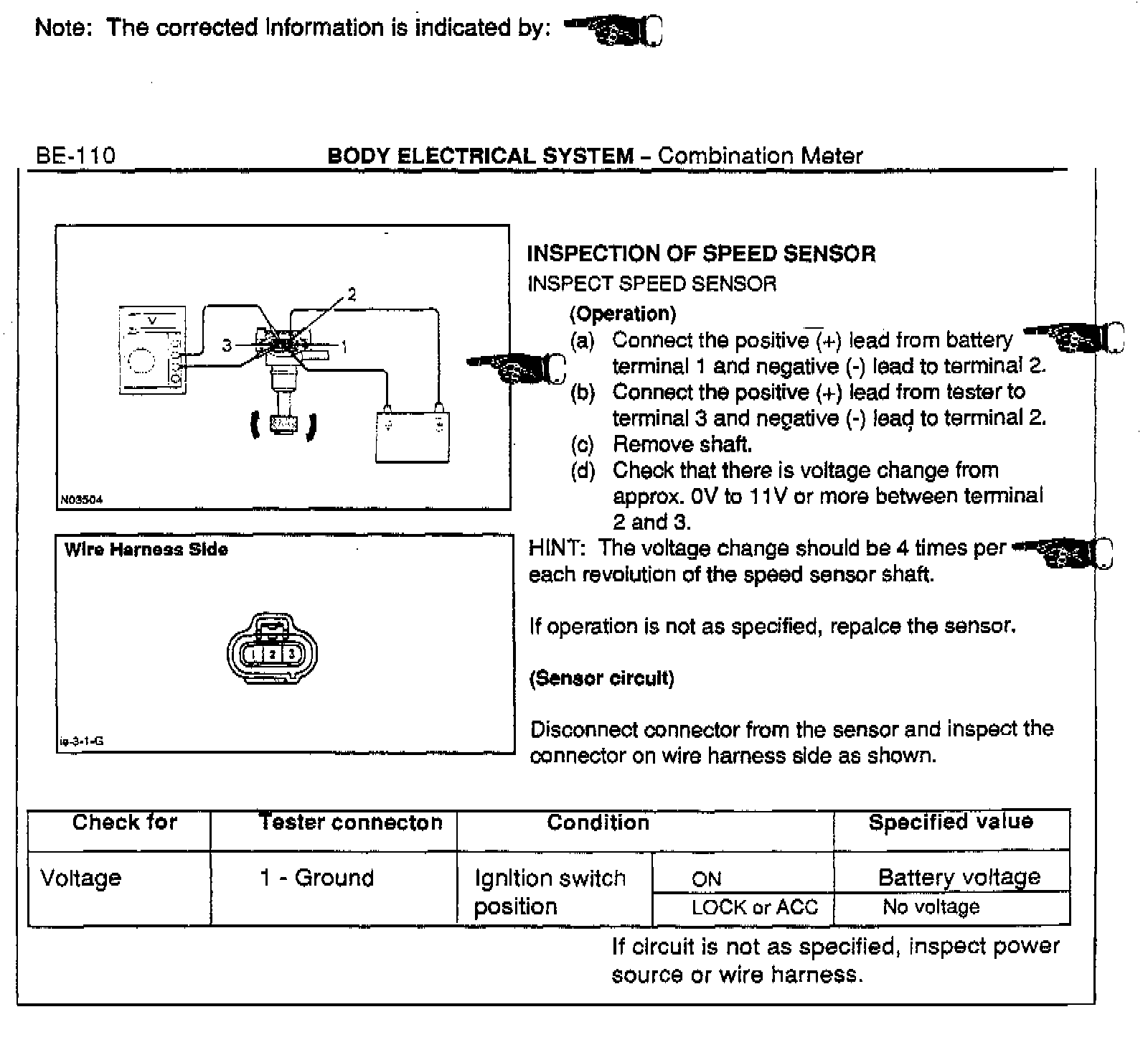 Speed Sensor - Inspection Corrections