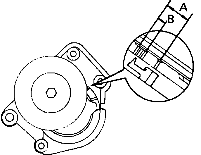 To check belt tension, use the tension gauge built onto the auto tensioner, Fig. 6. A new belt should be within the B range on the auto tensioner scale. A used belt should be within the A range on the auto tensioner scale. If the used belt is not within the A range, replace the belt with a new one. A new belt is a belt that has not been on a running engine longer than five minutes.