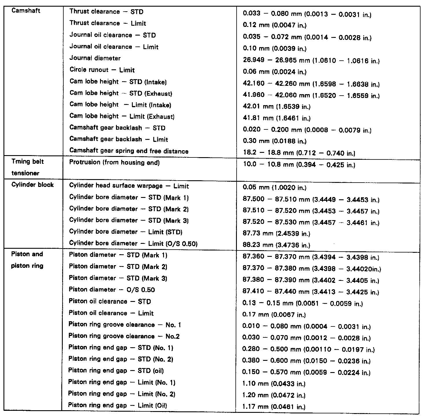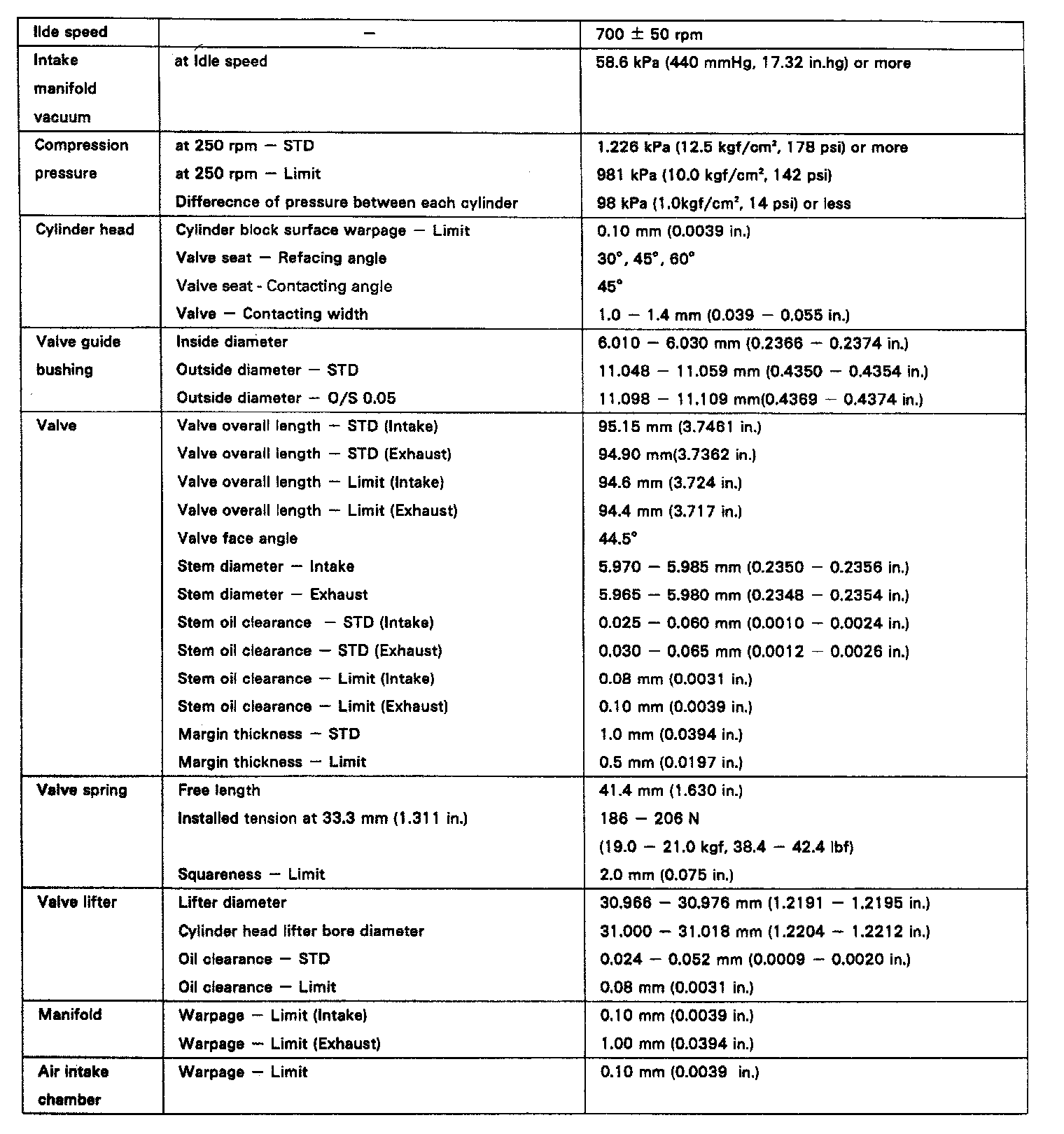 ENGINE SPECIFICATIONS