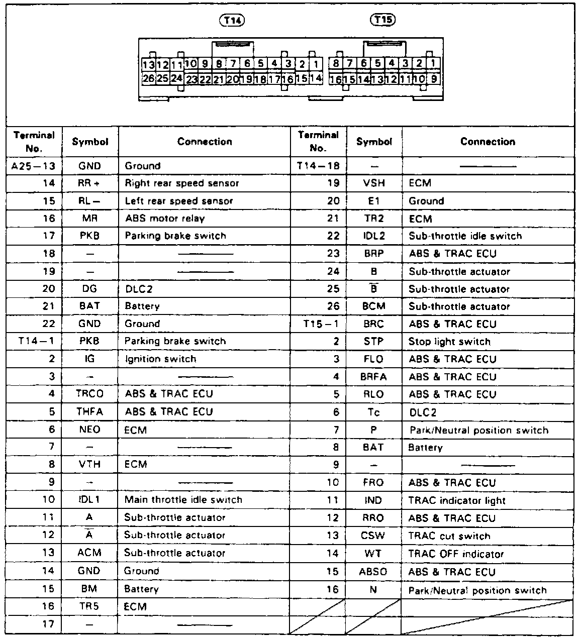 Fig. 36 TRAC ECU Terminal Identification:
